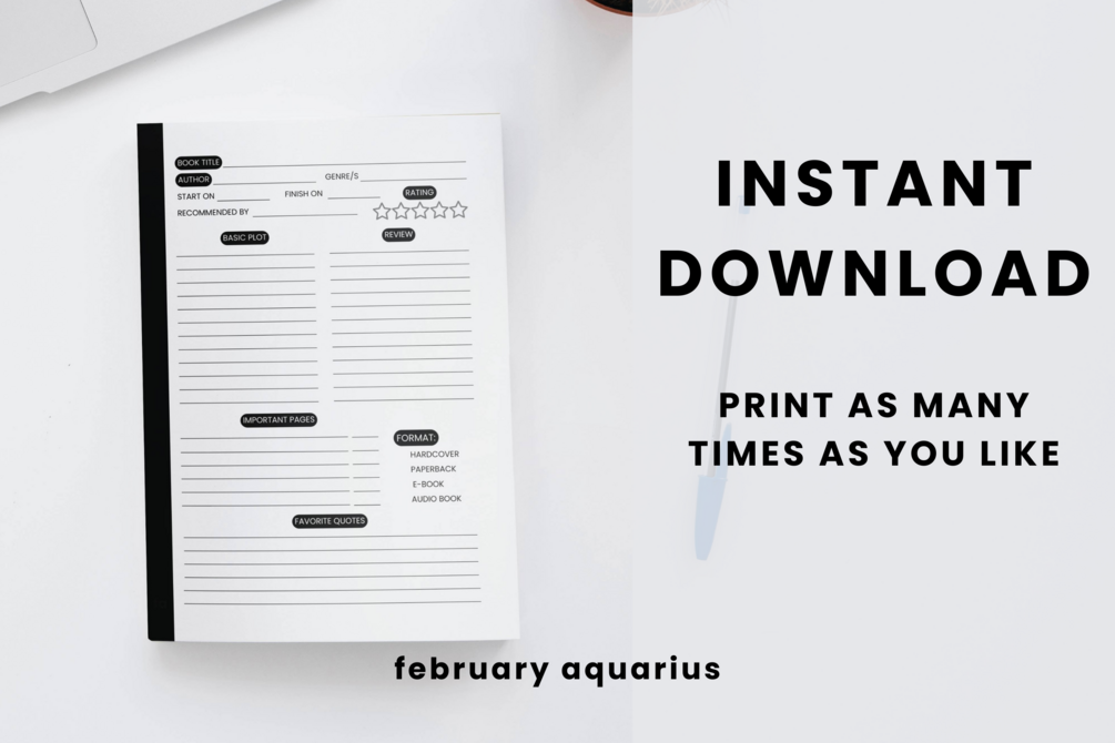 Perfect Gift Idea: Our 6-page book review printable makes a thoughtful and trendy gift for bookworms, book club members, or aspiring book bloggers. Create a customized book journal or include it as part of a book-themed gift basket for the avid reader in your life.