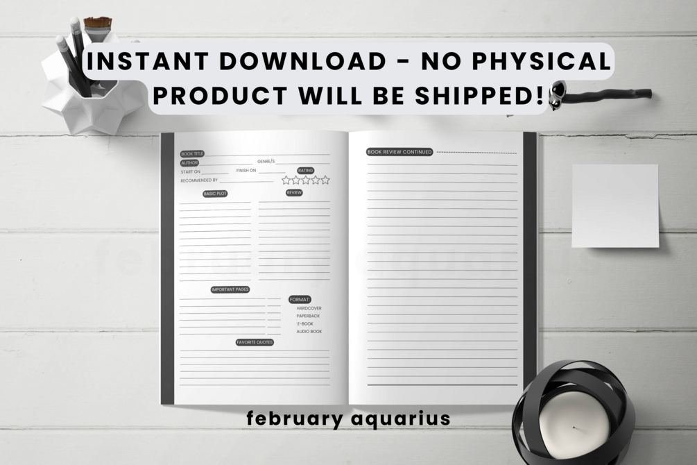 Thoughtful Book Reviews: With our 6-page printable, you can write detailed and insightful book reviews. Capture your thoughts, emotions, and impressions of the book in a comprehensive and engaging way.